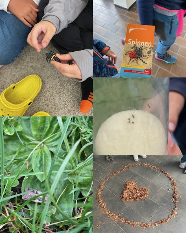 Mit Becherlupen und Bestimmungsbüchern ausgestattet, machten wir uns anschließend auf den Weg durch die Umgebung unserer Schule. Dabei entdeckten wir zahlreiche kleine Krabbeltiere, die wir